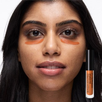 Escolha um corretivo de subtom quente para camuflar hiperpigmentação de tons frios, manchas escuras e olheiras profundas.