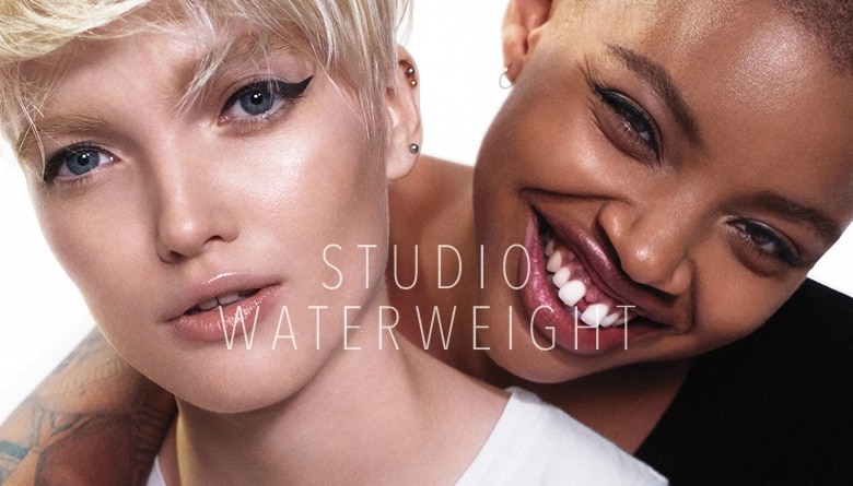 Studio Waterweight - ultra-hidratante, que desafia a gravidade - está de volta com novos produtos em fórmulas luxuosamente confortáveis. O novo Pó Compacto Studio Waterweight oferece um acabamento natural, suave, de textura cremosa porém elástica, como o toque suave do cashmere. O pó compacto de tons duplos apresenta variações quentes e frias das tonalidades para se adaptar com a sua pele! O Corretivo Studio Waterweight é uma fórmula ultrafluida com cobertura de média a alta e um acabamento natural. Enquanto hidrata suavemente, diminui o aspecto das imperfeições da pele e ajuda a reduzir a aparência de olheiras, manchas escuras e descoloração. O Pincel Triangular Concealer 106S é ótimo para alcançar pequenas áreas para uma aplicação rápida e uniforme.