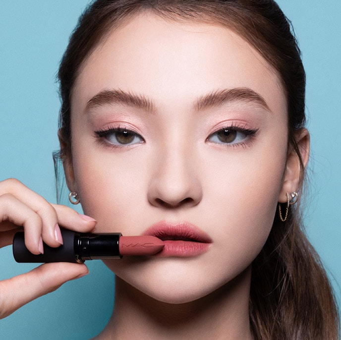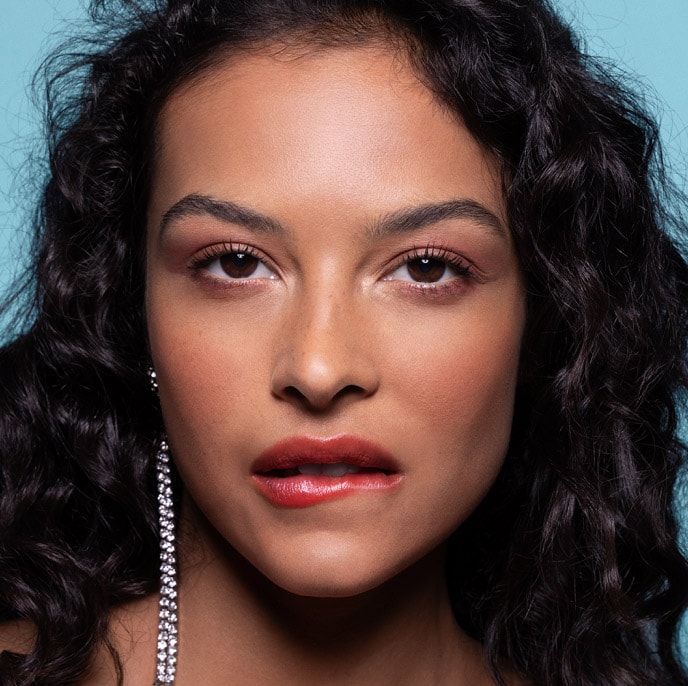 Conquiste esse efeito nude suave e esfumado como o da Ella Dalton, usando o Batom Matte Hidratante Powder Kiss na cor Teddy 2.0 nos lábios e o Batom Líquido 2 em 1 Lip + Cheek Mousse Powder Kiss na cor Taken nas bochechas.