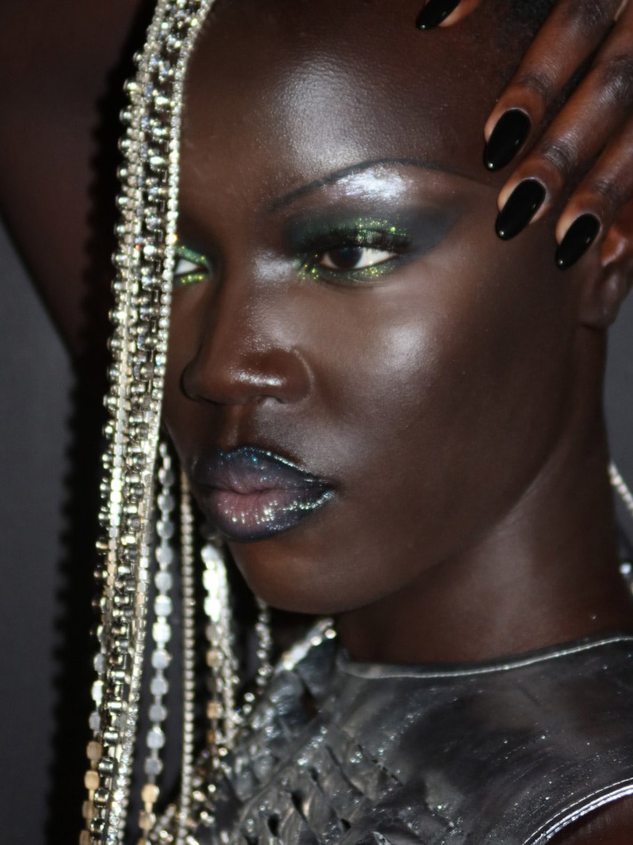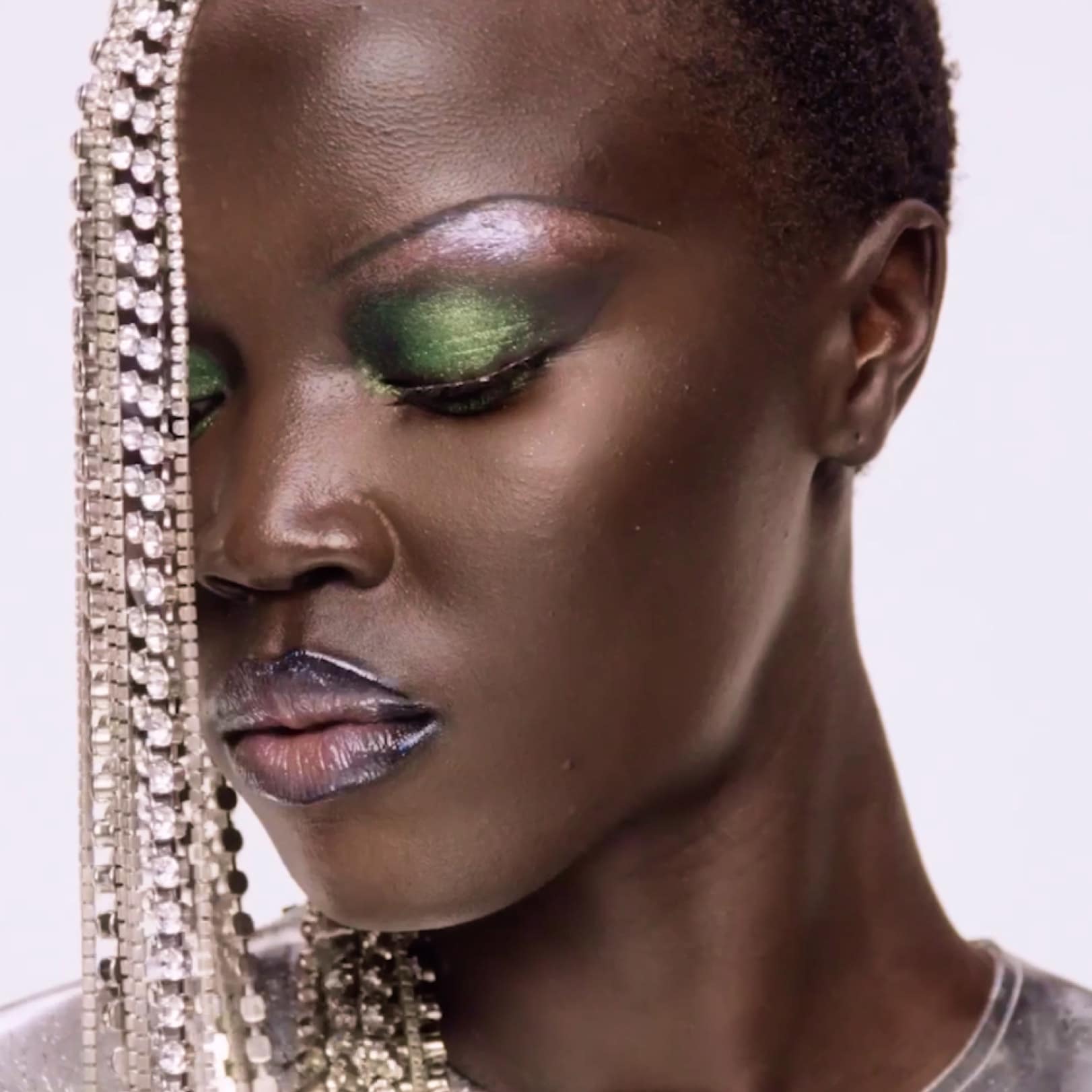 Dica M·A·C: misture acabamentos metálicos e espelhados para um visual que reflete toda a energia Y2K — e além.